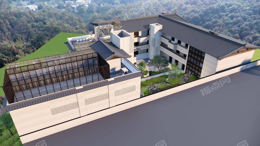 酒店占地2103平米,建筑面积5261平米,绿化面积1098平米,景观环绕四周和中庭、平台及屋顶花园;