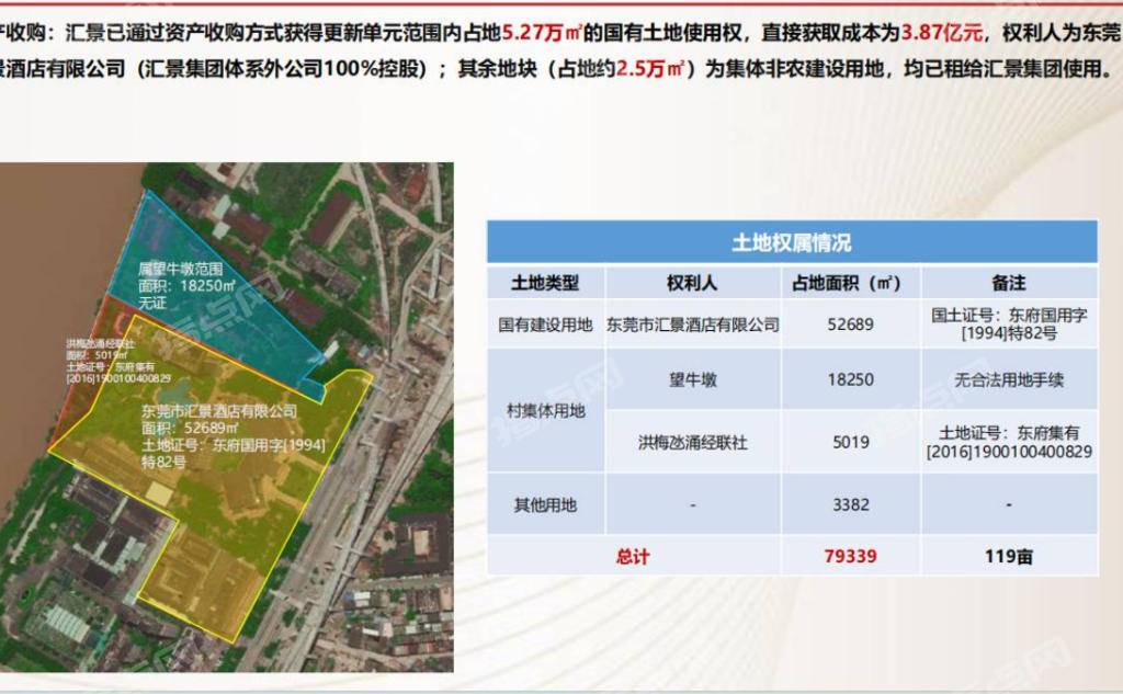 地理区位:本案位于水乡新城片区中部,东临洪梅大道(东莞西站),距离东莞西站300米,属于东莞西站 800米、10分钟步行生活圈; 项目四至:西临洪屋涡水道,北临合利工业园,南临雍景香江(碧桂园天御湾)。 项目净用地面积12.53万m²,总建筑面积38.04万m²,其中计容建筑面积28.03万㎡,不计容建筑面积10.01万㎡,容积率4.23。酒店停业中已清场。