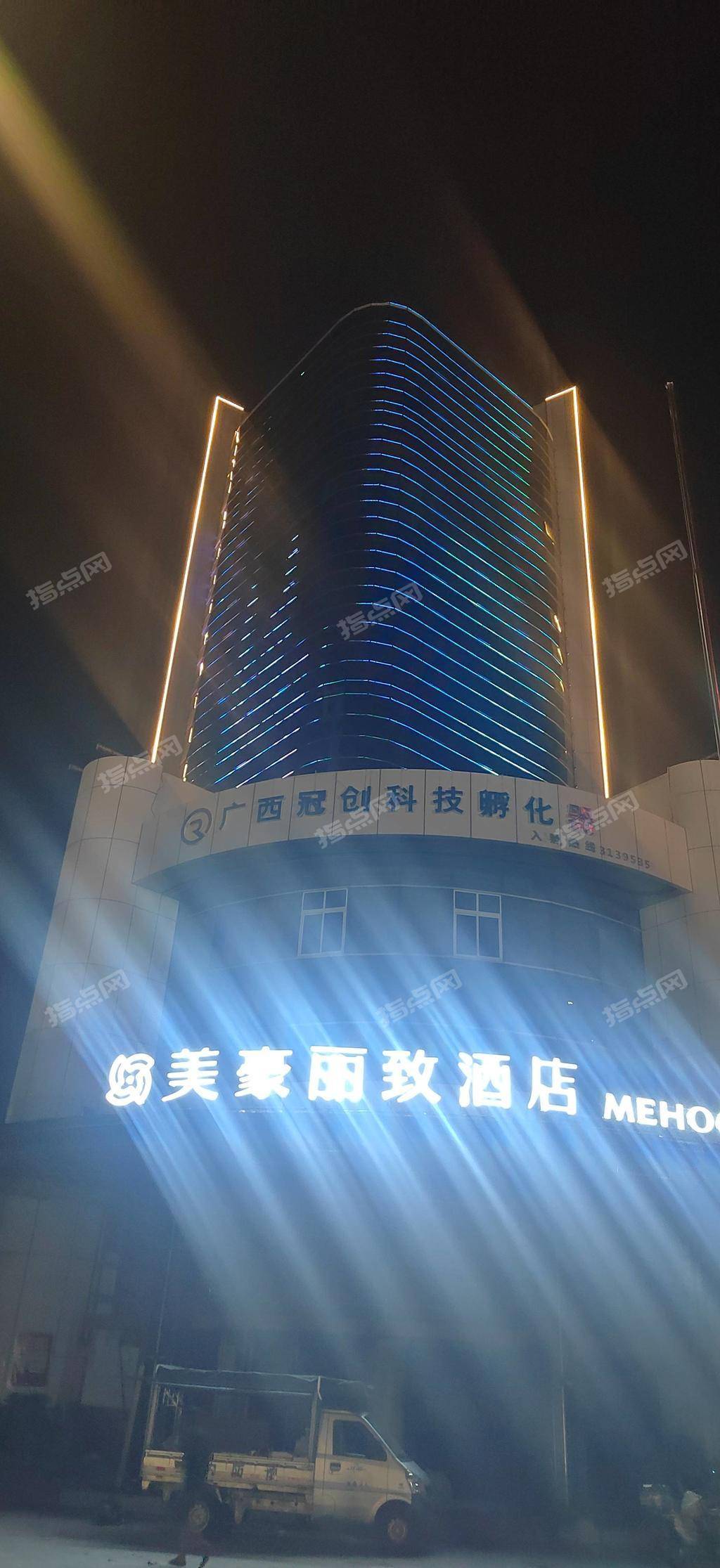 北海市海城区北海大道180号鸿海大厦,现在11楼以上是美豪丽致酒店,在装修中,6到11楼毛坯物业还可以做个经济型酒店,地理位置优越,交通便利,酒店外立面灯光已做好,欢迎咨询